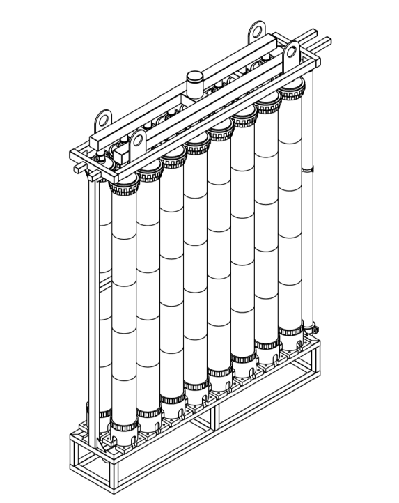 浸沒式膜過濾系統(tǒng)采用開放式外壓超濾膜組件,將其完全浸沒于膜池之中,通過液位壓差結(jié)合抽吸泵負(fù)壓抽吸產(chǎn)水,以膜組件取代傳統(tǒng)混凝、沉淀、過濾等工藝過程,廣泛應(yīng)用于飲用水安全、污水處理廠提標(biāo)、河道冶理、再生水資源、工水廢水回用、海水淡化等領(lǐng)域。